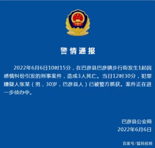 据此前爆料,6月6日上午,在黑龙江哈尔滨巴彦步行街附近,有三人被一名男子持刀杀害,包括两名成年人和一名小男孩。